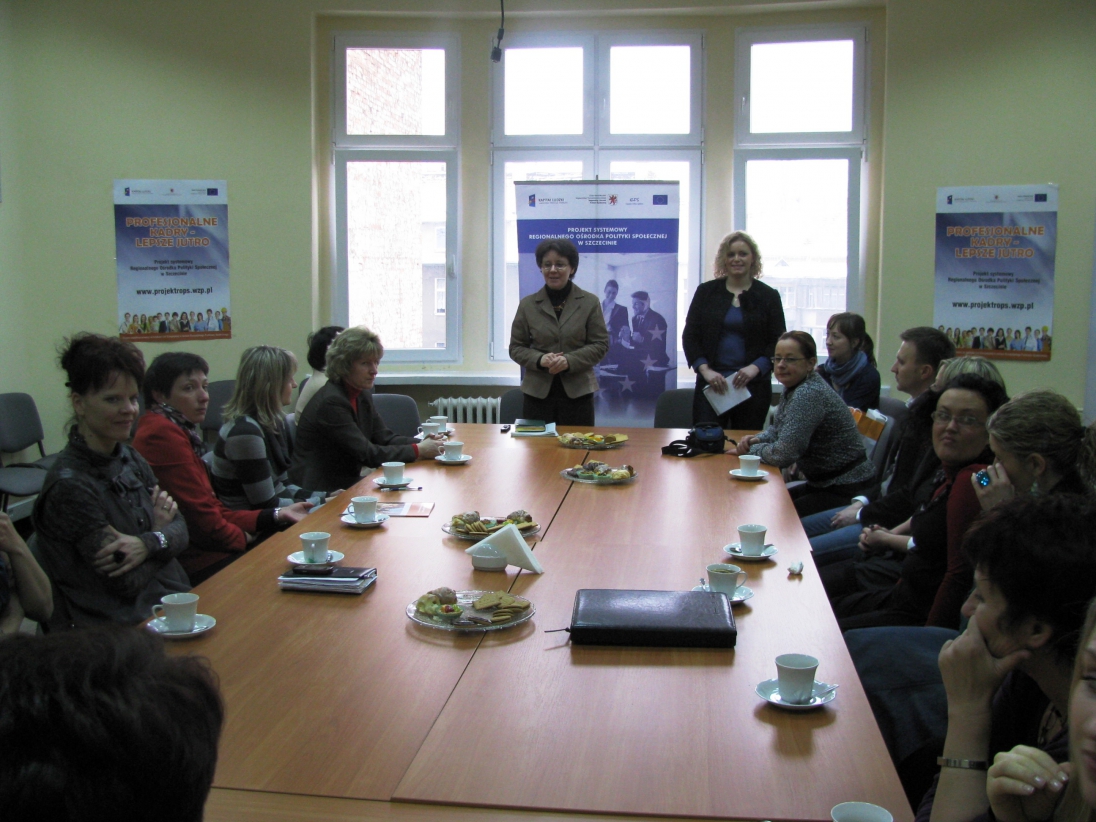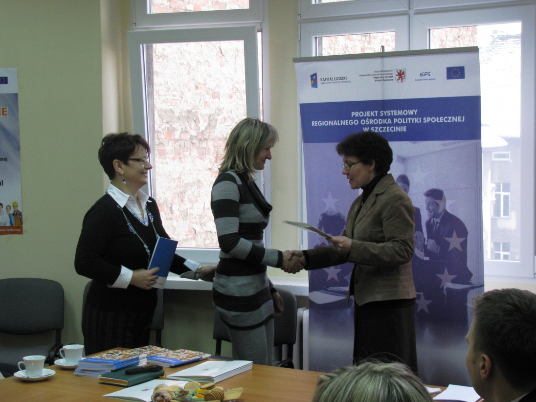 Wśród 11 ośrodków pomocy społecznej, które uczestniczyły w szkoleniach, zjawiły się niemal wszystkie, a ich przedstawiciele odebrali certyfikaty z rąk Pani Doroty Rybarskiej ”“ Jarosz - Dyrektora Regionalnego Ośrodka Polityki Społecznej ”“ oraz Pani Beaty Pawłowicz Lidera Procesu Edukacyjnego z ramienia Stowarzyszenia CAL. Spotkanie było okazją do podzielenia się swoimi refleksjami z uczestnictwa w cyklu, wymiany poglądów i doświadczeń z wykorzystania metody CAL w swojej pracy zawodowej.