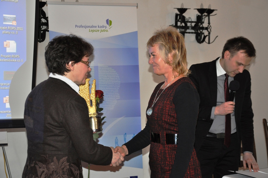 Podobnie jak w ubiegłym roku, podczas konferencji wręczone zostały statuetki Lider kształcenia ustawicznego w dziedzinie pomocy społecznej dla jednostek i pracowników najaktywniej biorących udział w działaniach realizowanych w ramach projektu. W tym roku statuetkę z rąk Doroty Rybarskiej-Jarosz – p.o. Dyrektora ROPS, otrzymali: